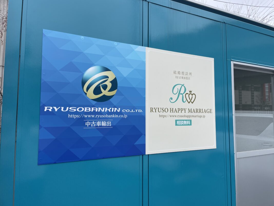 名古屋市港区で車販売、結婚相談所を行っている龍相鈑金、RYUSO HAPPY MARRIAGE様の看板施工をさせていただきました。